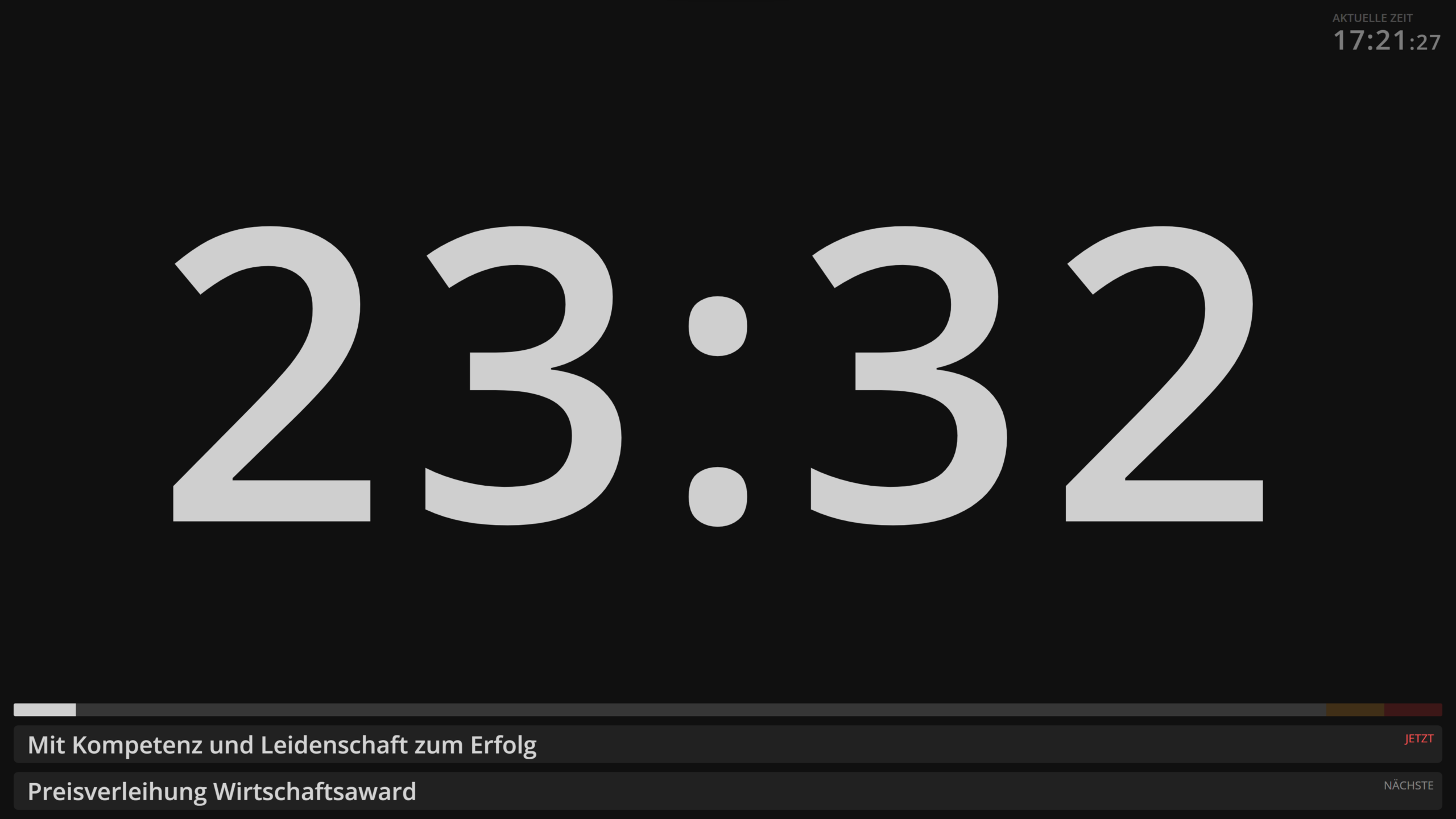 Bild- und tontechnisch sind wir für alle Zuspielungen und die Aufzeichnung zuständig. Das heißt, wir spielen Auftritt-Songs der Redenden ein, bespielen den Beamer und die Präsentationsflächen, bieten mit zwei Bühnenbildschirmen jeden Redner den Blick auf die Zeit und dessen Slides u.v.m.